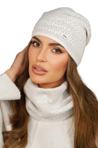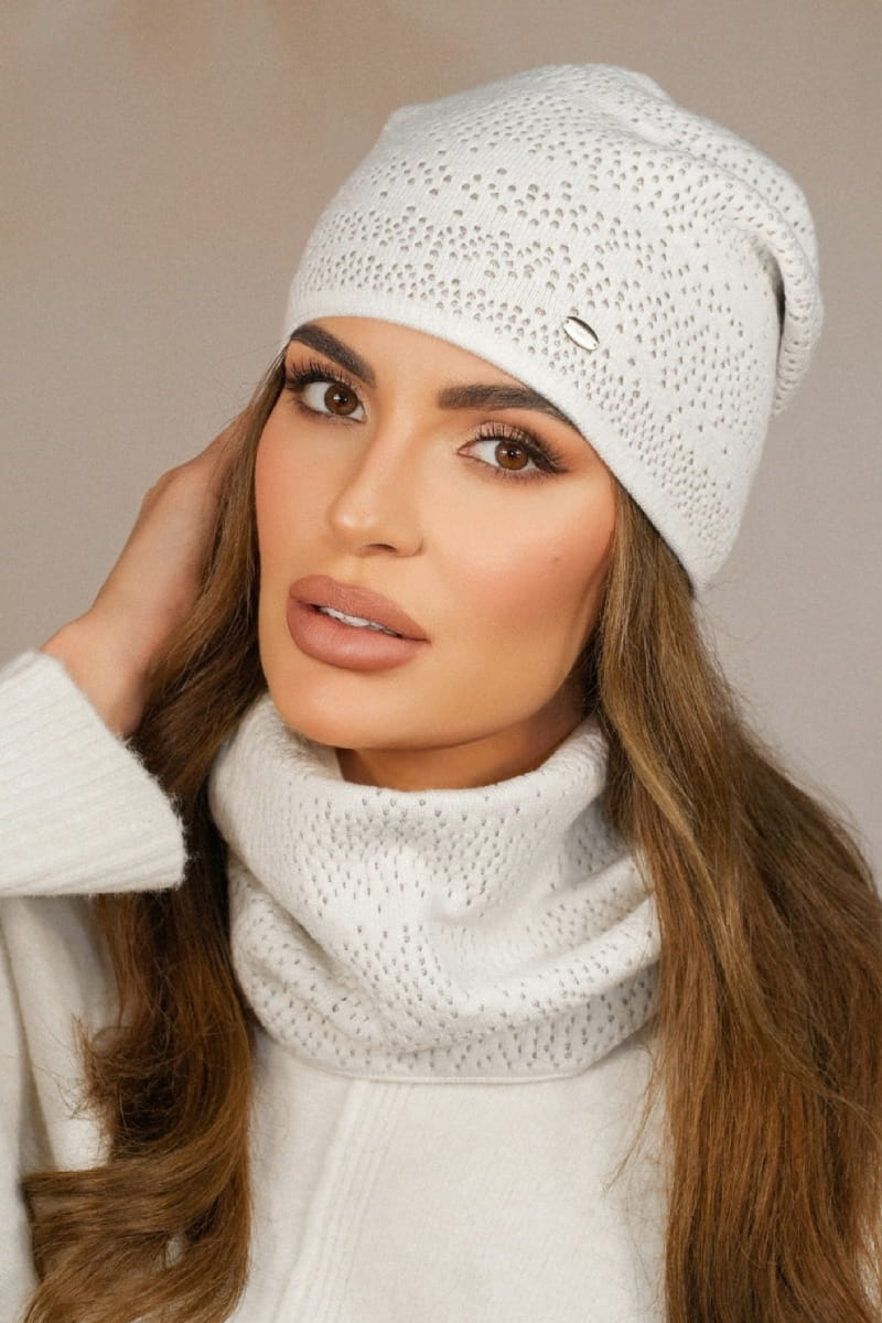 Zimowy Komplet Czapka Z Kominem Kolor Ekru Kamea- Narcyz