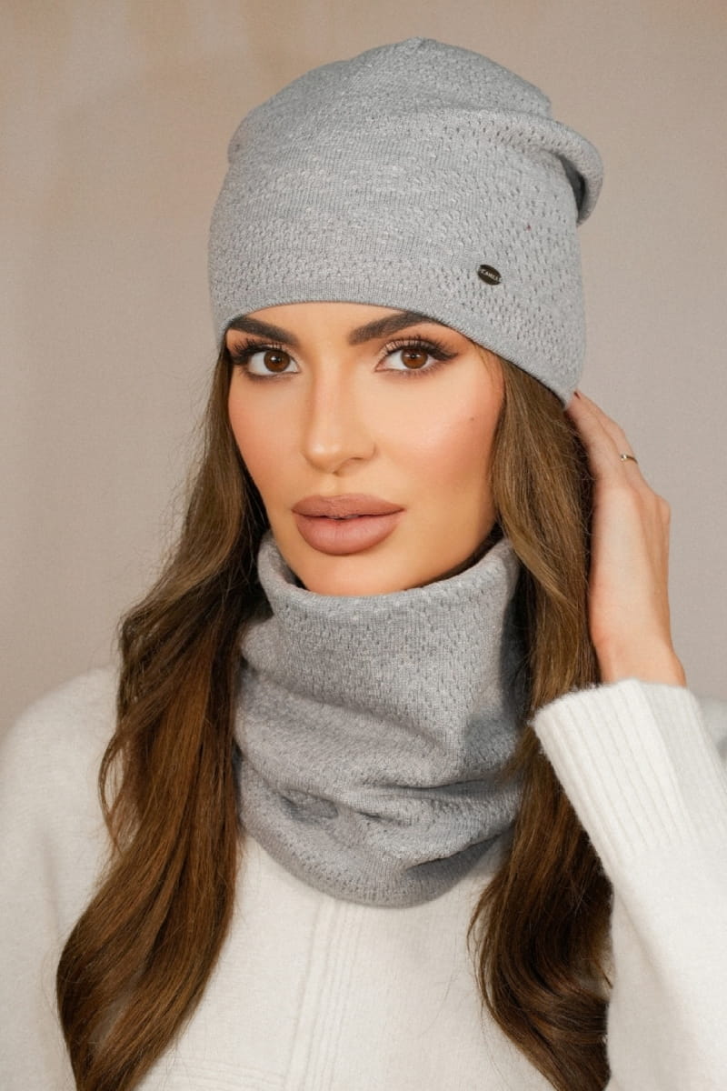 Zimowy Komplet Czapka Z Kominem Kolor Szary Kamea- Narcyz