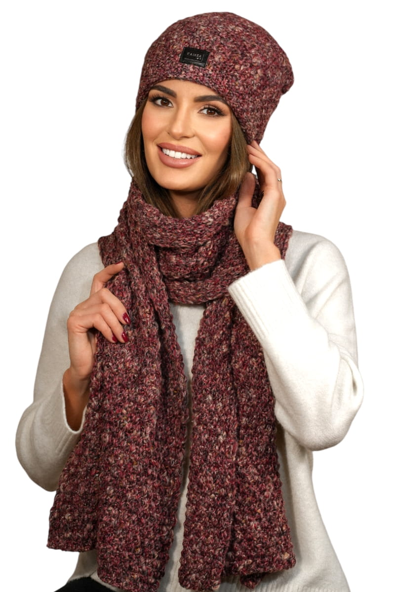 Zimowy Komplet Czapka Z Szalikiem Kolor Czerwony Kamea- Dotto