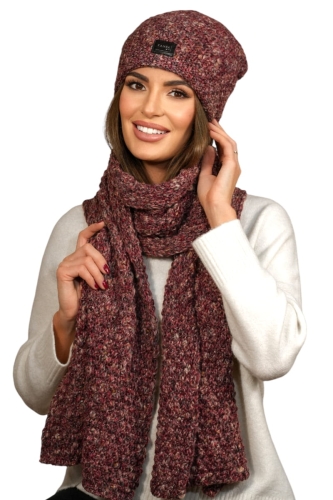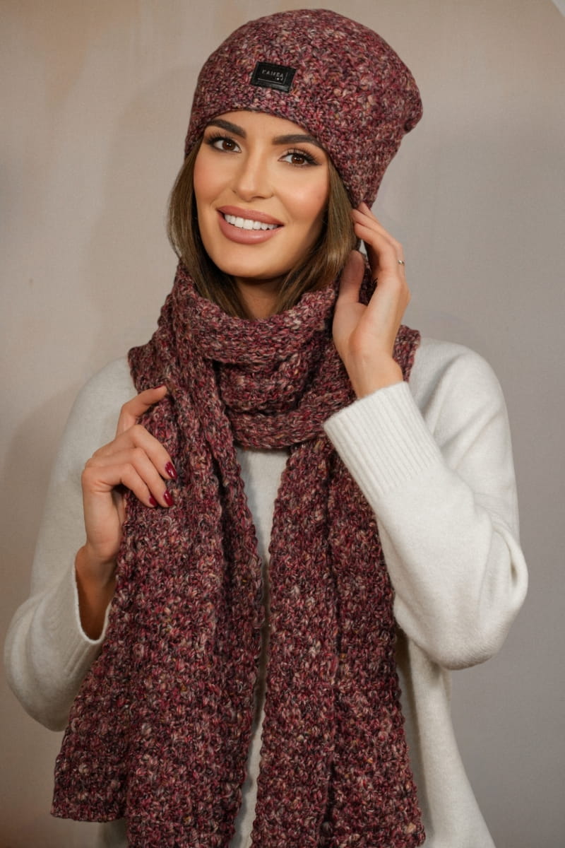 Zestaw zawiera ciepły szalik, który idealnie dopełnia całość, tworząc komfortowy i modny komplet na chłodniejsze dni.