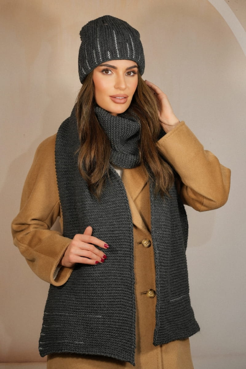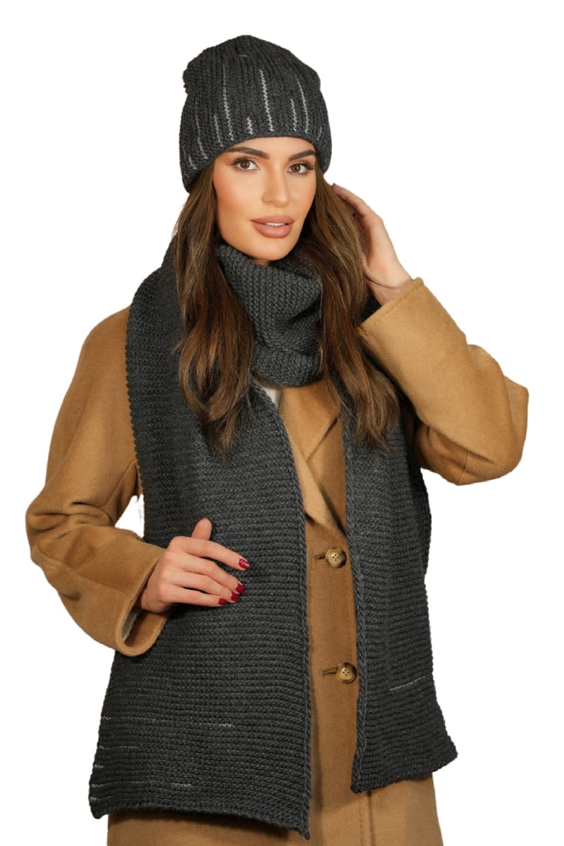 Zimowy Komplet Czapka Z Szalikiem Kolor Grafitowy Kamea- Habis