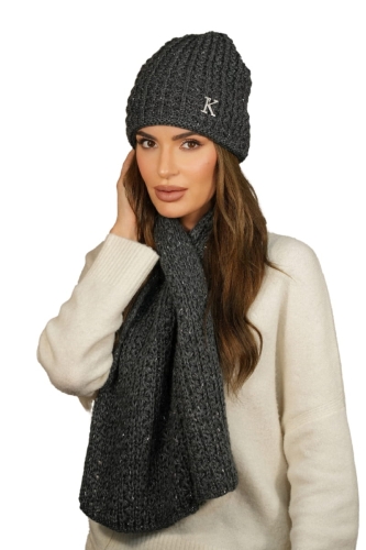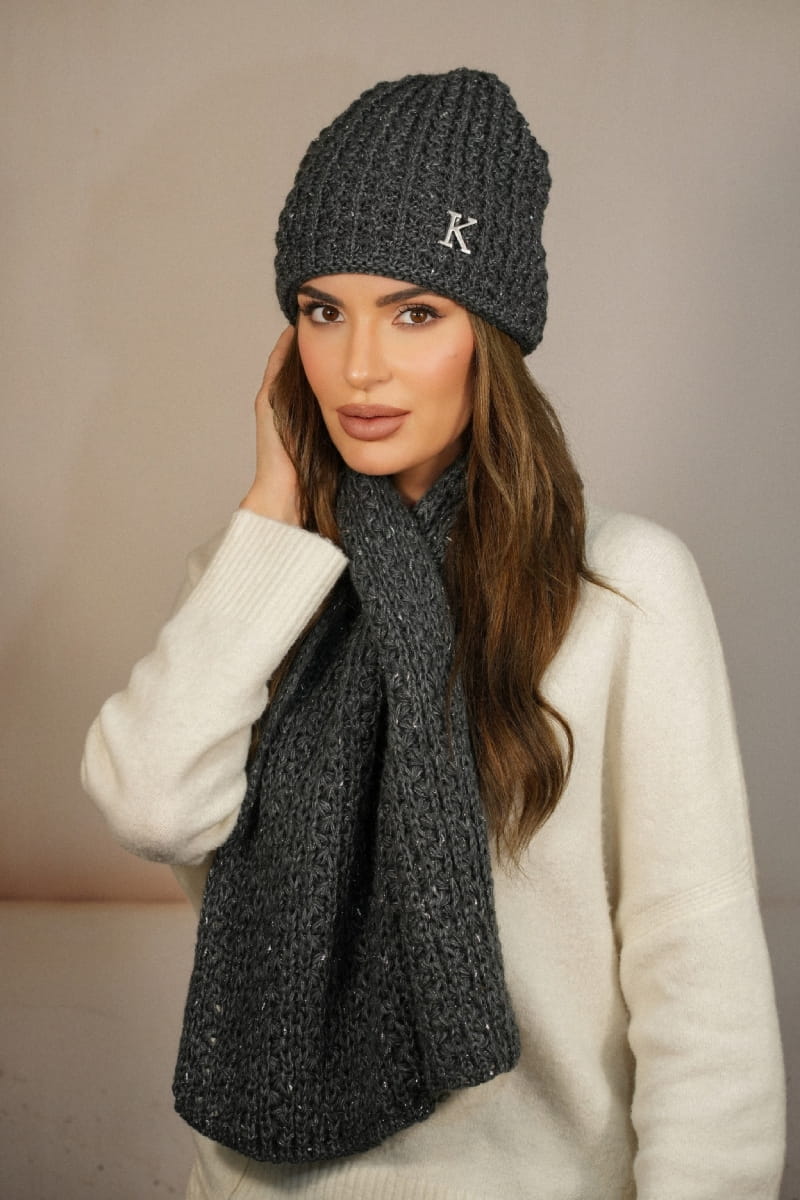 Zimowy Komplet Czapka Z Szalikiem Kolor Ciemny Szary Kamea- Kosmos