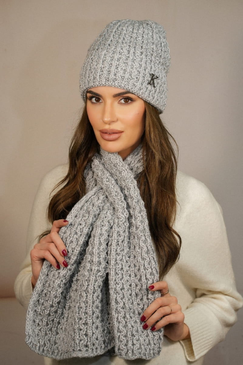 Zimowy Komplet Czapka Z Szalikiem Kolor Jasny Szary Kamea- Kosmos