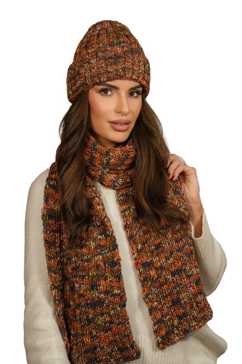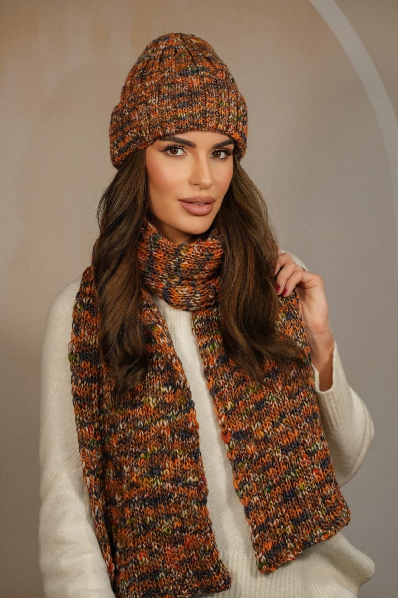 Zimowy Komplet Czapka Z Szalikiem Kolor Rudy Kamea- Hasu
