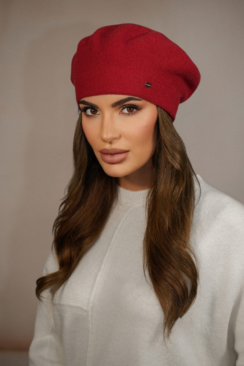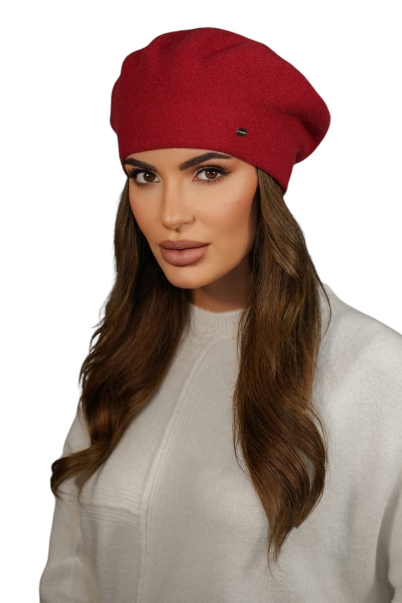 Zimowy Wełniany Beret Damski Kolor Czerwony Kamea-Kiang
